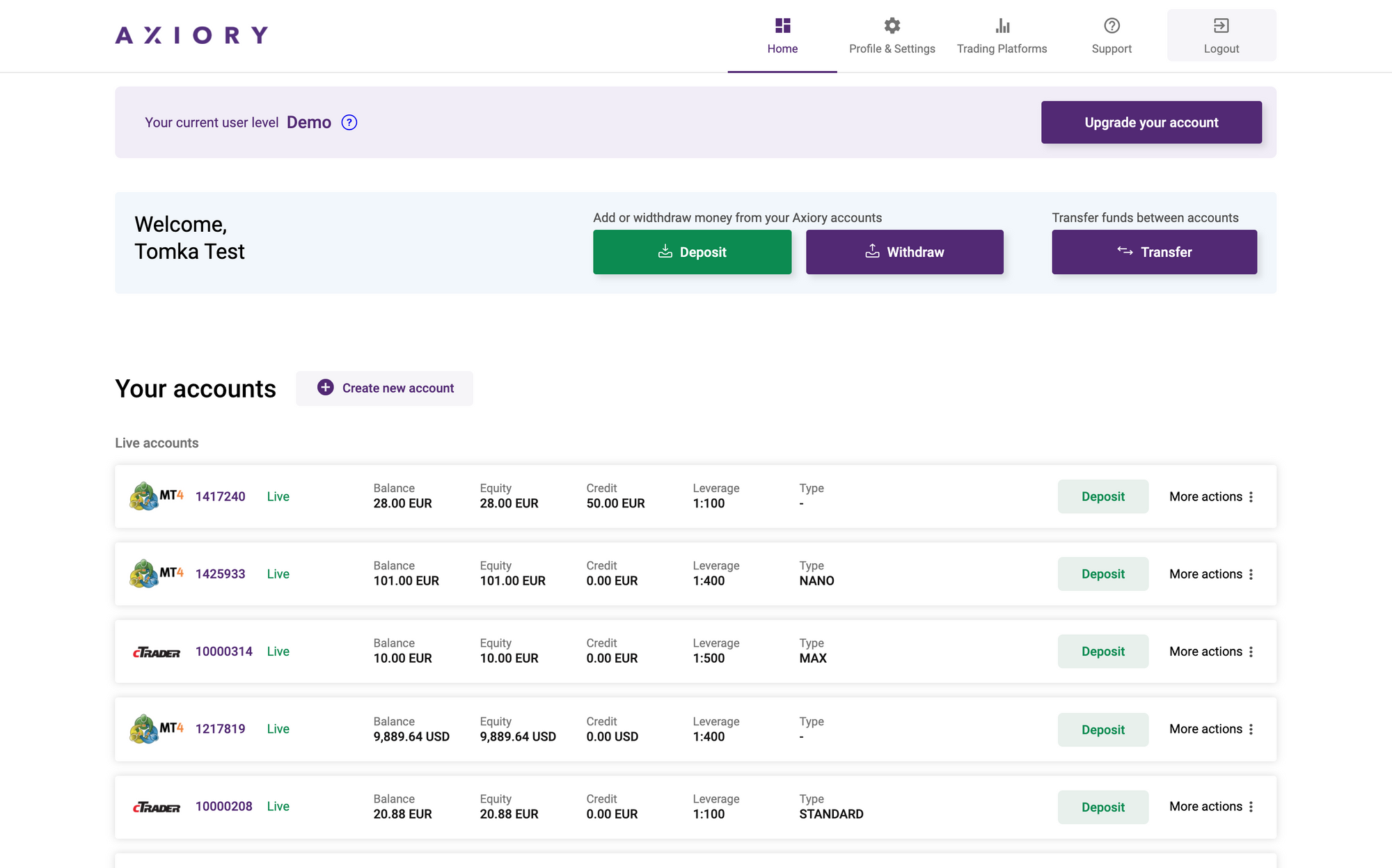 Klientská zóna je vlastne niečo ako internet banking - môžete si otvárať rôzne účty v rôznych menách a na rôznych obchodných platformách. Môžete si na nich vkládať peniaze, prevádzať ich medzi nimi alebo vyberať. K tomu historické a štatistické dáta alebo grafy. Oproti internet bankingu je to jednoduchšie, pretože neriešime žiadne hypotéky, úvery či poistenia.